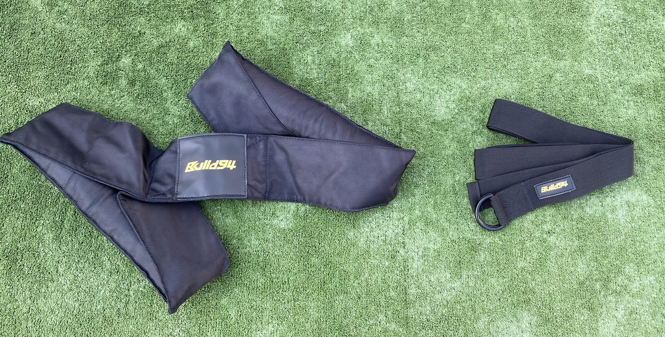 ストレッチは、ナイロン製パッドに両足を入れ、 ベルトで柱などに固定して行います。